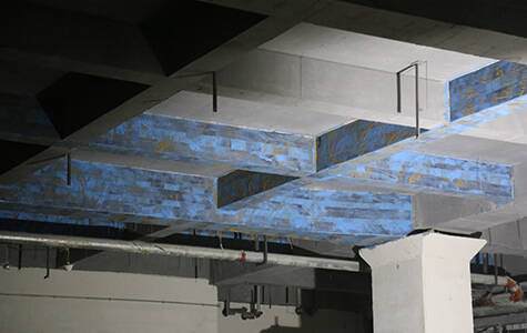 Furthermore, FRP fabric is pasted at the bottom of the floor with a certain spacing, so that some floors are covered by FRP, while others are not.